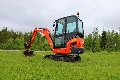 Kubota KX019-4 är känd för sin stabilitet och prestanda i förhållande till storlek. Den väger cirka 1,9 ton och passar perfekt för trånga utrymmen, trädgårdsanläggning, dränering och andra entreprenadarbeten.