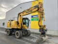 MOBILBAGGER KOMATSU PW 180-10 6-ZYLINDER KOMATSU-MOTOR, 158 PS BETRIEBSGEWICHT: 18 TO. VORBEREITUNG INKL. SICHERHEITSVENTIL FÜR STIEL- UND VERSTELLZYLINDER VERSTELLAUSLEGER LÖFFELSTIEL ACHSEN 2.55 M ZENTRALSCHMIERUNG (MECHANISCH) HCU C STANDARD DREHDURCHFÜHRUNG GREIFERBEISSROHR 2,55 M PLANIERABSTÜTZSCHILD HINTEN (MIT ZYLINDERSCHUTZ) REGENSCHUTZ SCHEIBENWISCHER RADIO 8 RÄDER MIT BEREIFUNG 10.00-20 16PR MIT ZWISCHENRINGEN, MITAS NB38 SCHNELLWECHSELPLATTE OQ 70/55, HYDR. 100 CM TIEFLÖFFEL OQ 70/55 HTL15 MIT VOR STECKMESSER UND ZÄHNE