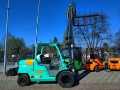 Uwaga dla klienta ostatecznego: Mitsubishi FD50NT wózek widłowy diesel rok produkcji 2018 udźwig 5000 kg maszt duplex wys. podnoszenia masztu +/- 3500 mm wys. konstrukcyjna masztu +/- 2560 mm napęd diesel silnik Perkins, moc 55 kW opony przód 8.25-15/6.50 SE BLIŹNIAKI opony tył 7.00-12/5.00 SE pozycjoner wideł z przesuwem bocznym wymiary osprzętu: szer. karetki +/- 1840 mm min. rozstaw wideł +/- 340 mm max. rozstaw wideł +/- 1670 mm, SpecialEquipment: Twin tyres, OtherAttachments: Seitenschieber, Zinkenverstellgerät