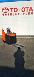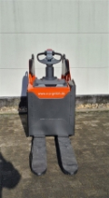 Plattform manuell hochklappbar, feste Seitenschutzwände mit schmalem Deichselgriff, Servolenkung, 12,5 km/h Version, Gabelrollen Einfach, Stützrad Einfach- Premium, Antriebsrad - Premium, PIN-Code