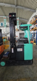 Mitsubishi Elektro Schubmaststapler RB16K mit 1600 kg Tragkraft bei Lastschwerpunkt 600 mm Farbe Mitsubishi Grün Triplex Mast 6300 mm bei 2100 mm Freihub und 2695 mm eingefahrener Bauhöhe Seitenschieber Batterie 48 Volt / 625 Ah Ladegerät 1150 mm Gabeln 4.130 Betriebsstunden am 03.03.2026