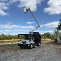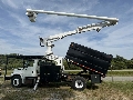2011 International 4300 bucket chipper truck, 7.6L diesel, EF automatic transmission, 72,476 miles, 70' Altec articulating boom lift, hydraulic tool connections, upper and lower controls, 11' 15 cubic yard dump body, height protection rack, outriggers, Ground to Catwalk 8ft, length of Truck 27' 6', width of ruck 8' 7", WB 220", bed length 11", bucket reach 70', GVWR 37,000lbs, call for more information, financing available.