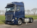 Number of axles: 2, Configuration: 4x2, Own weight: 7950 kg, Gross vehicle weight: 18000 kg, Total fuel capacity: 840 litre, 2nd fueltank, Fifth wheel height: 115 cm, fifth-wheel: Fixed, Diff. locks: 1, Aluminium rims, Suspension type: air suspension, Cabin type: Sleeping cabin, Cruise control, Tacho, Digital tachograph, Airconditioning, Number of airbags: 1, Parking Airco, Parking heater, Electric windows, Electric mirrors, Radio/cassette, Color: Blue, Heated mirrors, Lighting type: Halogen lamps, Laneassist, Climatecontrol, Seat heating, Bluetooth, Blind spot sensor, Flashing lights, Engine capacity: 375 Kw (503 Hp), Fuel type: diesel, Euro: 6, Gearbox kind: Telligent, Gearbox make: Mercedes Benz, Number of Gears: 12, Add. break system, Retarder make: Voith, Power steering, ABS, ASR, Starter battery, Central locking, Seats configuration: 1+1, Seat cover: cloth, Chair adjustment: Manually